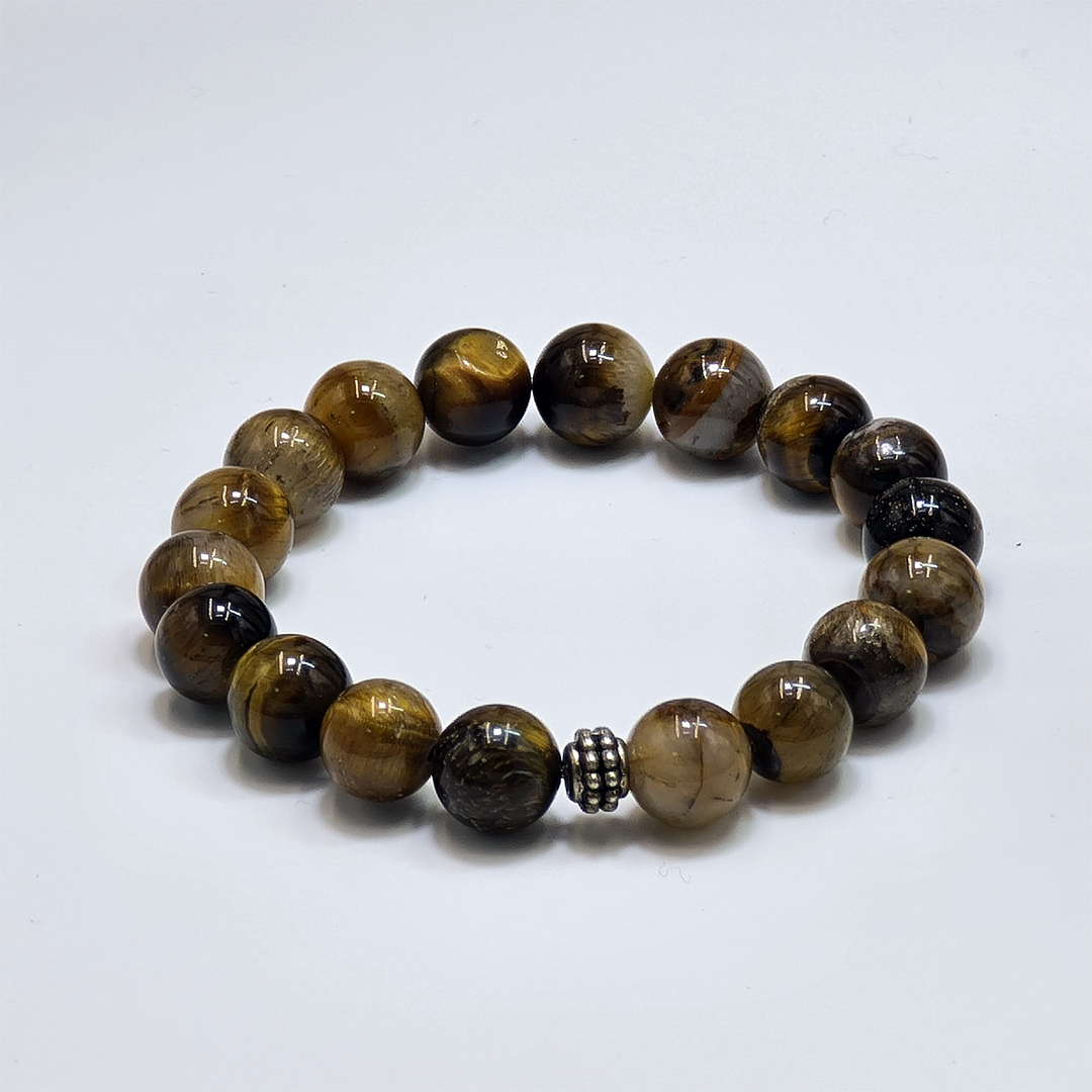 Armband aus 8mm Rundschliff-Tigerauge-Steinen.