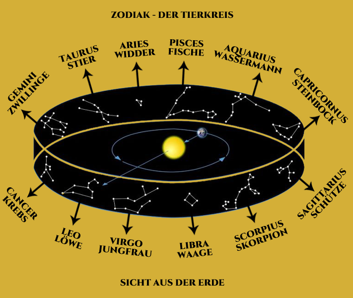 An dieser Stelle sei kurz angemerkt, dass die heutigen Tierkreiszeichen auf dem astrologischen Tierkreis basieren, der mit den ursprünglichen Sternzeichen und ihren dazugehörigen astronomischen Sternbildern nicht mehr viel zu tun hat. Die 12 Tierkreiszeichen, wie wir sie heute kennen, existieren zwar schon seit über 2000 Jahren, aber heutzutage werden sie nur noch für Horoskope verwendet, auch wenn sie früher als Kalender dienten. Ursprünglich hatten die Tierkreiszeichen etwas mit den zum jeweiligen Zeitpunkt am Himmel zu sehenden Sternkonstellationen zu tun. 12 bestimmte Sternbilder bildeten den sog. “Zodiak” also den “Tierkreis”, der in 12 gleich große Abschnitte mit jeweils 30-tägigen Monaten aufgeteilt war.